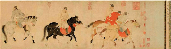 元代任仁发《五王醉归图卷》
