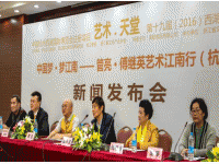 图:中国梦、梦江南--管亮、傅继英书画艺术江南行新闻发布会现场图:管亮、傅继英在西湖艺术博览会现场。..