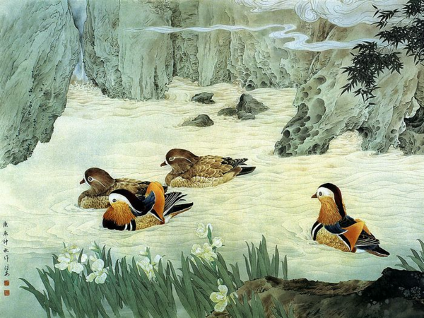 《芙蓉游鹅图》